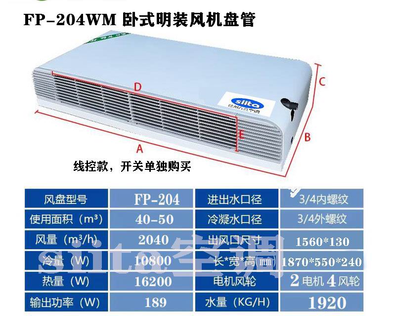 浙江普通款臥式明裝風機盤管型號,參數選型表格